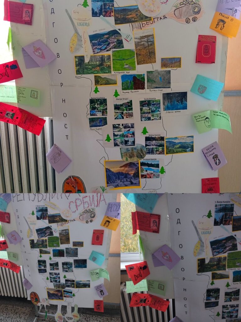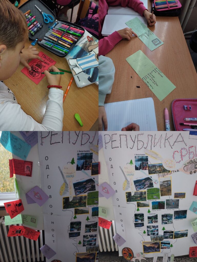 Четвртаци су се бавили активношћу која се базирала на корелацији садржаја предмета природе и друштва, српског језика и ликовне културе. Крајњи резултат је био рад свих ученика, цртање карте наше земље, лепљење слика предела по избору ученика, откривање наше кухиње и