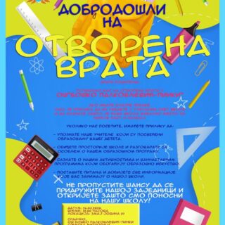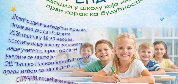 Драги родитељи, позивамо вас на дан отворених врата! Ако имате будуће прваке, ово је идеална прилика да их уведете у узбудљив свет школе и сазнате зашто је наша школа право место за њихов раст...